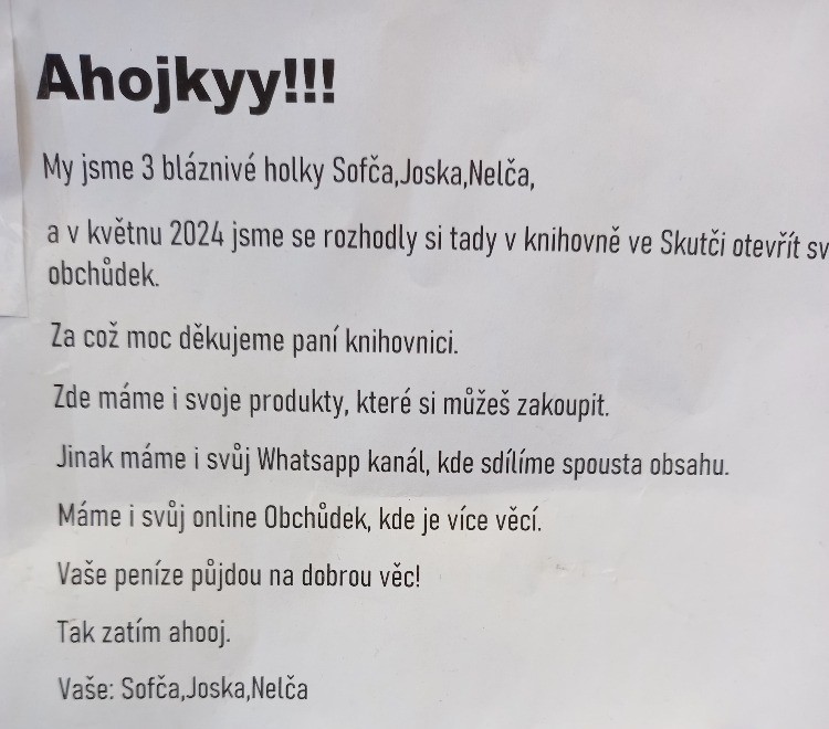 Ještě ve "staré" knihovně nás v loňském roce oslovilo několik dívek, které si chtěly v knihovně "otevřít" svůj obchůdek s vlastnoručně vyrobenými drobnostmi. V rámci podpory dětské kreativity (vyráběly prý i o přestávkách ve škole), a díky deklarovanému záměru (výdělek hodlaly věnovat na dobročinné účely), měly děti vyhrazený prostor k vystavování a prodeji až do doby stěhování knihovny.